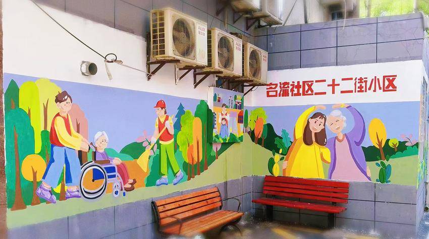 名流社区22街小区曾因墙面斑驳、小广告泛滥等令人闹心。社区启动墙面彩绘项目,发动志愿者化身“艺术魔法师”,以墙为纸创作文明公益广告、邻里互助场景、亲子温馨画面。原本单调的墙面蜕变为色彩斑斓的“文明画卷”,不仅告别“脏乱差”,更让居民在潜移默化中提升环保意识,共同守护小区环境。