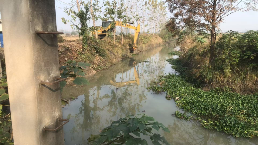 在施工现场,挖掘机挥舞着长臂,有条不紊地清理着沟渠内的淤泥,工作人员则紧随其后,对边坡进行细致修整,并认真清除两岸的杂草。经过系统且全面的整治,原本淤塞严重的渠道变得畅通无阻、整齐有序,水面清澈见底,两岸平坦整洁,整个沟渠环境焕然一新。