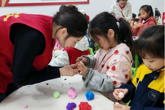 孩子们举着自己捏的彩泥脊兽笑眼弯弯,有的是色彩斑斓的飞禽瑞兽,有的是带犄角的萌趣小兽。志愿者接过作品轻夸细节,古建里的神兽,就这么成了掌心的小欢喜。“这次活动太有意思了!我以前在电视上看到房顶上的小动物就觉得好奇,今天终于知道它们是谁了,还能自己做一个带回家!”一位参与活动的小朋友捧着自己的黏土海马,兴奋地展示着。