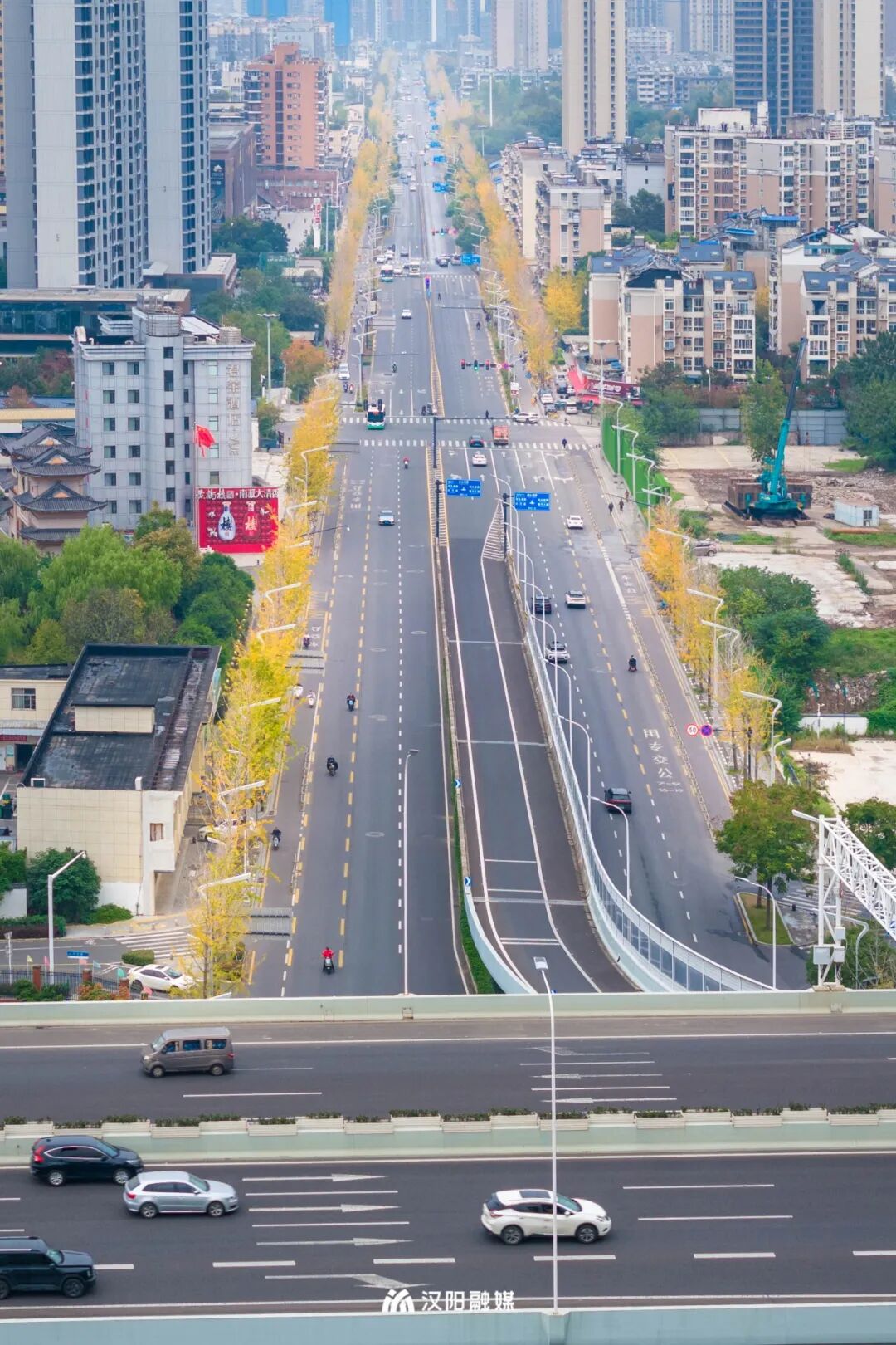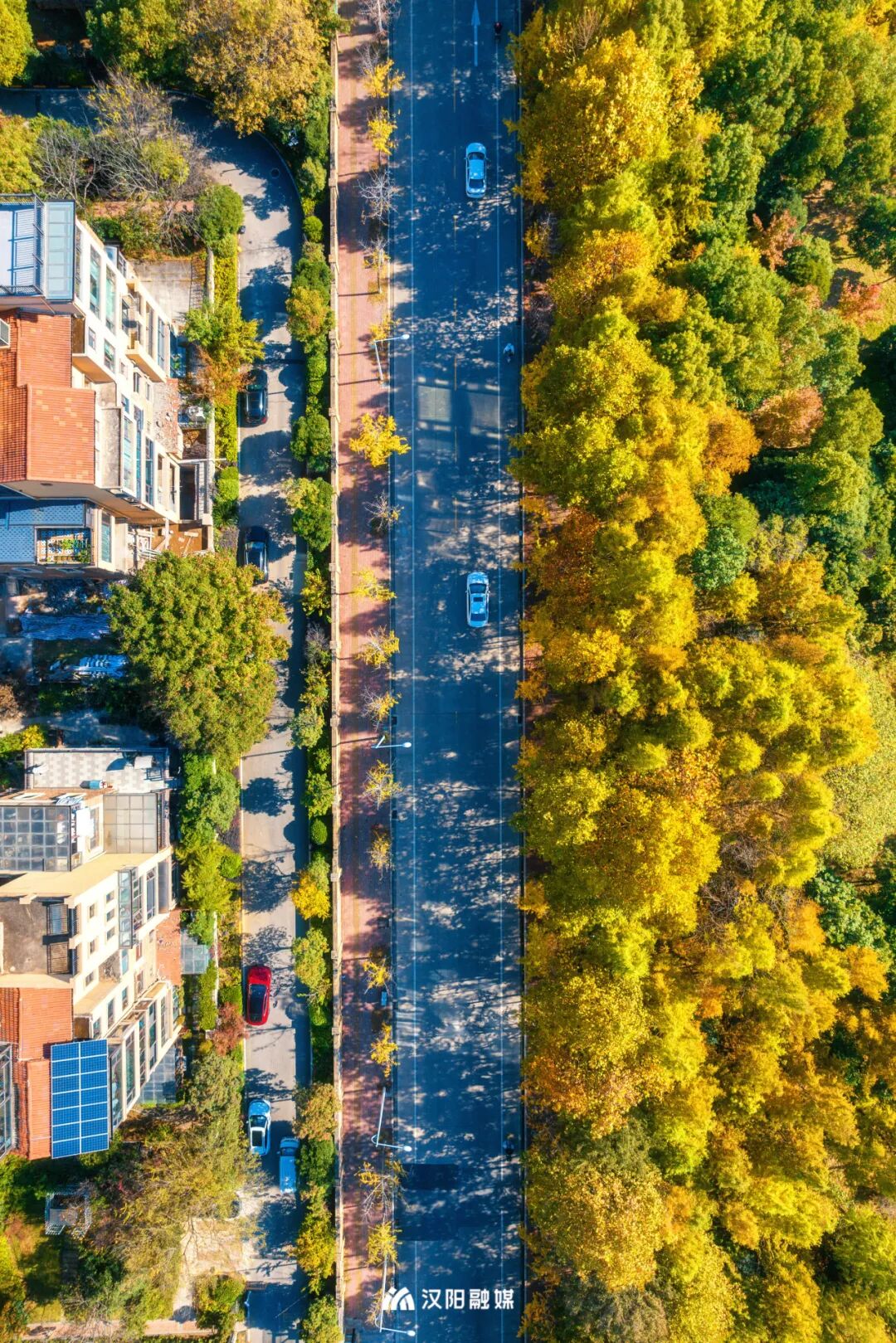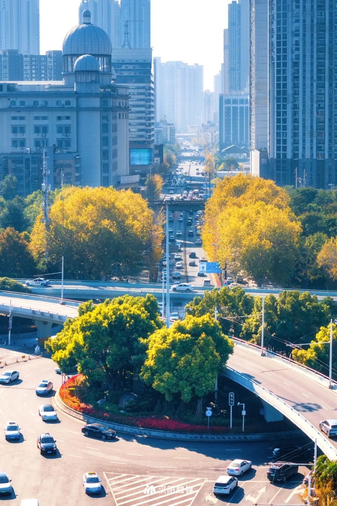 这是全武汉市银杏最多的一条大道,900多棵银杏正渐次转黄,尤其在钟家村、洲头、建港这几个路段,金黄尤其浓密。它们整齐列道,枝叶交叠,把日常通勤路变成一场沉浸式的秋日巡游。
