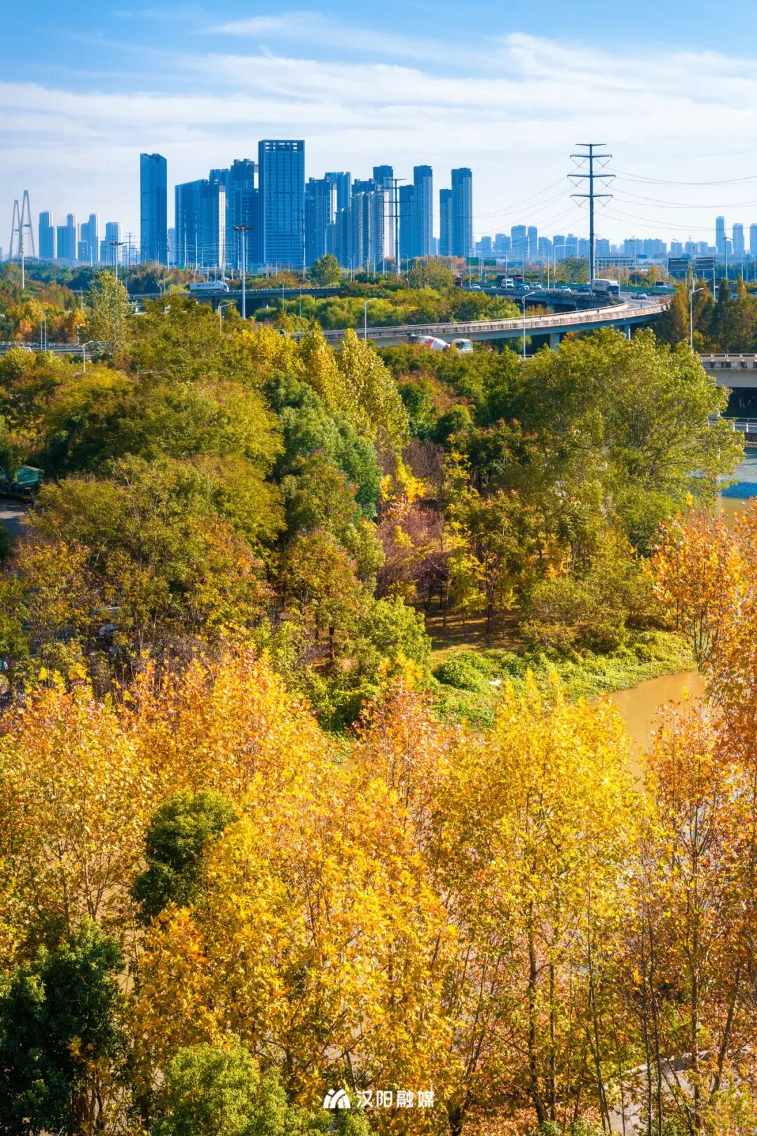 汉阳秋色从不只一处,董家店、汉阳公园、晴川阁、琴台绿化广场、墨水湖公园、龙阳湖公园……银杏正在这些地方接二连三地黄起来。