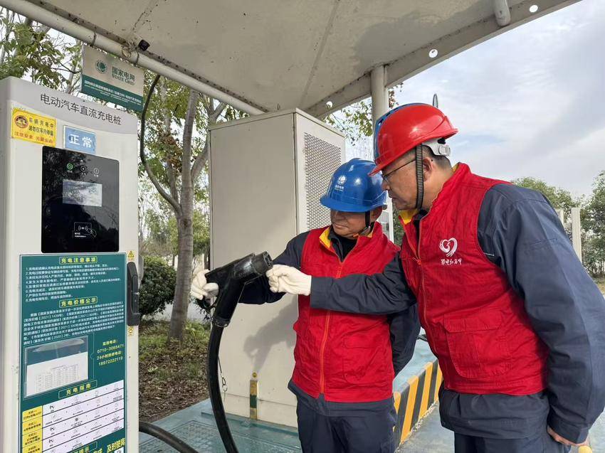 湖北日报客户端讯(通讯员方杨茜)为保障新能源车主在低温天气下的充电体验与出行安全,11月26日,国网南漳县供电公司涌泉供电所“鄂电红马甲”服务队提前行动,对辖区高速服务站的电动汽车直流充电桩开展寒潮前专项安全巡检,为绿色出行筑牢“温暖防线”。