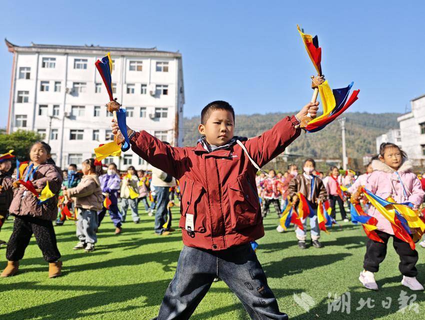 湖北日报客户端讯(通讯员 王恕森 唐炜)11月27日,宣恩县高罗镇中心小学操场上,同学们手持铜铃齐跳土家族八宝铜铃舞,活态传承“非遗”文化。