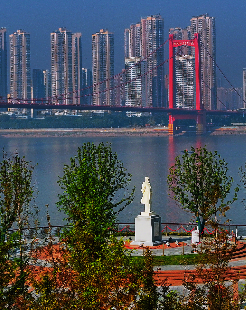 2003年,武船建造了这座雕像。公园建设过程中,完整保留了雕像本体,还在一旁设置了红色文化墙,镌刻《水调歌头·游泳》。