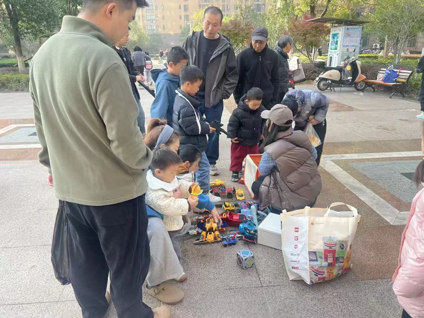 广场中央,一个披着红色披风、怀抱超大汉堡玩具的小男孩,正与手持蓝色飞机模型的紫衣男孩进行着一场“激烈” 的讨价还价。两人时而认真阐述自己物品的优势,时而眼神交汇商量交换条件,经过几分钟的 “博弈”,最终达成共识 —— 用汉堡玩具交换飞机模型。达成交易的瞬间,两个孩子兴奋地击掌欢呼,紧紧抱着换来的 “心爱之物” 四处展示,成就感溢于言表。这种原始而纯粹的交换方式,不仅让闲置玩具重获新生,更让孩子们懂得了物品的价值不在于价格高低,而在于彼此的需要与认可,在交换中收获了珍贵的友谊。