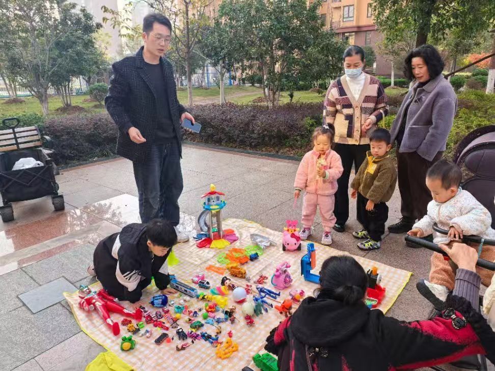 家长们则在一旁悠闲交流,分享育儿心得、畅谈生活趣事。一位正在帮孩子整理摊位的女士,看到邻家孩子纠结于两件玩具之间,主动上前耐心给出建议;几位坐在长椅上的老年居民,看着孩子们欢快奔跑的身影,脸上露出了欣慰的笑容,不时交流着社区的变化与温暖。广场上,孩子们的欢声笑语、家长们的亲切交谈、邻里间的热心相助,交织成一曲温馨和谐的社区乐章。不少居民表示:“这样的活动太有意义了,不仅让孩子玩得开心,还能认识更多邻居,感觉整个社区就像一个大家庭。”
