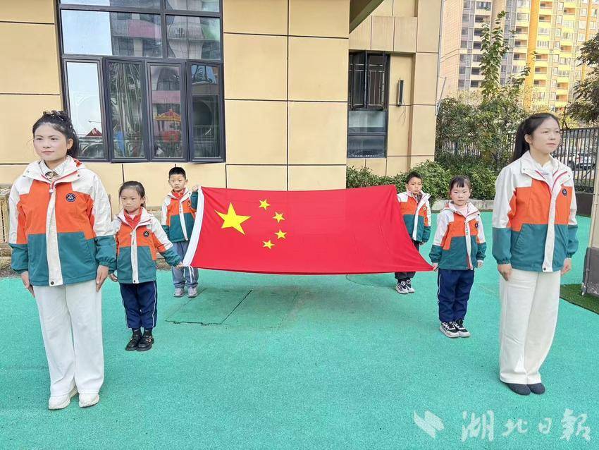 首先入场的是庄严的国旗队!小护旗手们迈着坚定有力的步伐,护卫着鲜艳的五星红旗。“升国旗,奏唱国歌!”全体师生及家长肃立行注目礼。伴随着雄壮的国歌,五星红旗冉冉升起。这一刻,爱国主义的种子在每一个幼小的心灵中深深扎根。