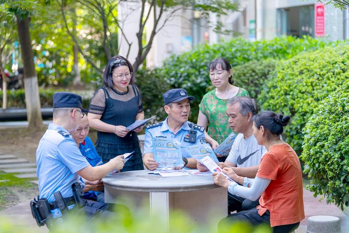 宜昌市民政局联合伍家岗区公安分局开展老年人反诈知识进社区活动,民警在胜利四路社区为老年人讲述防诈知识。