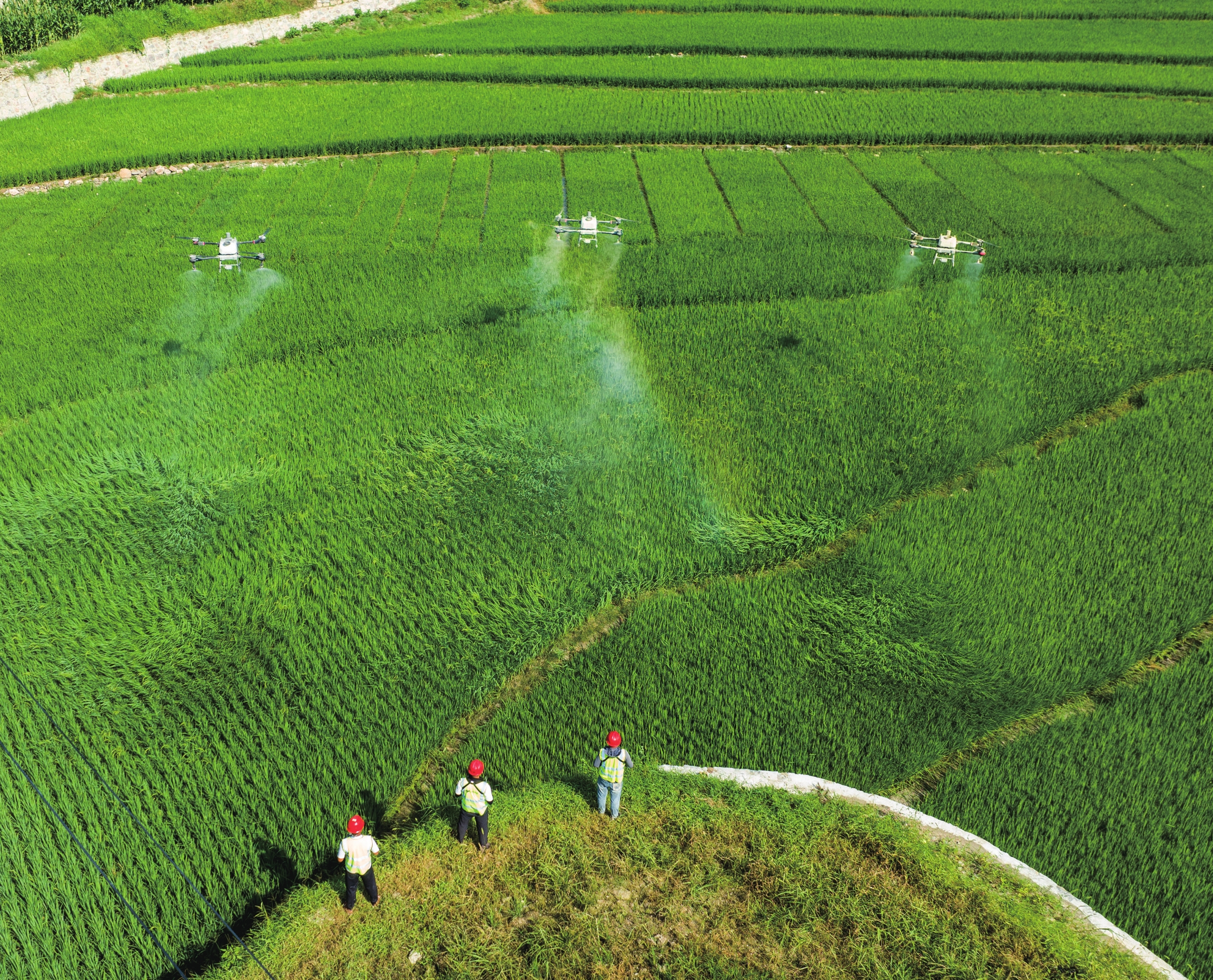 秭归九畹溪镇石柱村,无人机在农田里进行“飞防”作业。 (通讯员 周仕伟 摄)