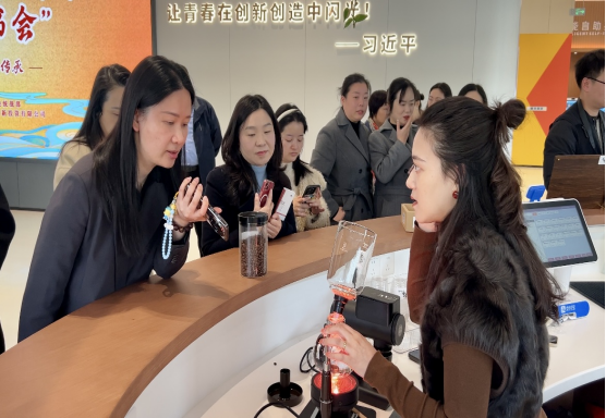 在随后的文创展台参观环节,参会人员欣赏各类创意作品,感受文化融合创新的蓬勃活力。咖啡品鉴环节中,专业咖啡师现场展示拉花技艺,醇香咖啡与轻松交流相得益彰,为活动增添了浓厚的文化氛围。