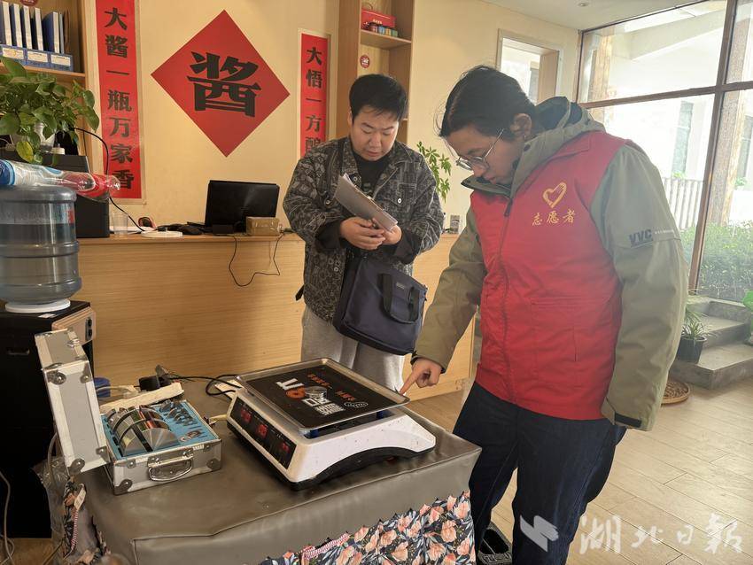 在现场,质量检测人员仔细按照标准操作规程对各类主打产品进行抽样,现场封装编号并做好溯源标记。计量检定人员则对企业内的电子秤等计量器具进行校准,确保生产过程计量精准,从源头把控产品质量。综合业务人员热情介绍了湖北省质量管理一站式服务大悟服务站情况,并动员企业成功完成注册入驻。