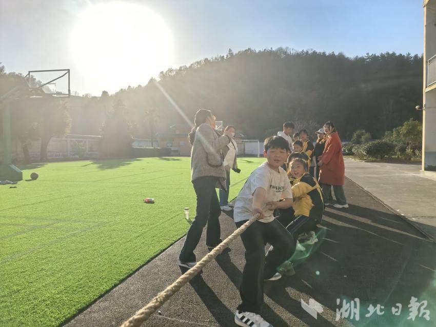 “我最喜欢拔河比赛,需要团队协作和持久耐力。虽然失败了,但特别开心!”三年级学生李达腾笑着说。老师们也积极参与其中,与学生们并肩作战,师生情谊在互动中悄然升温。