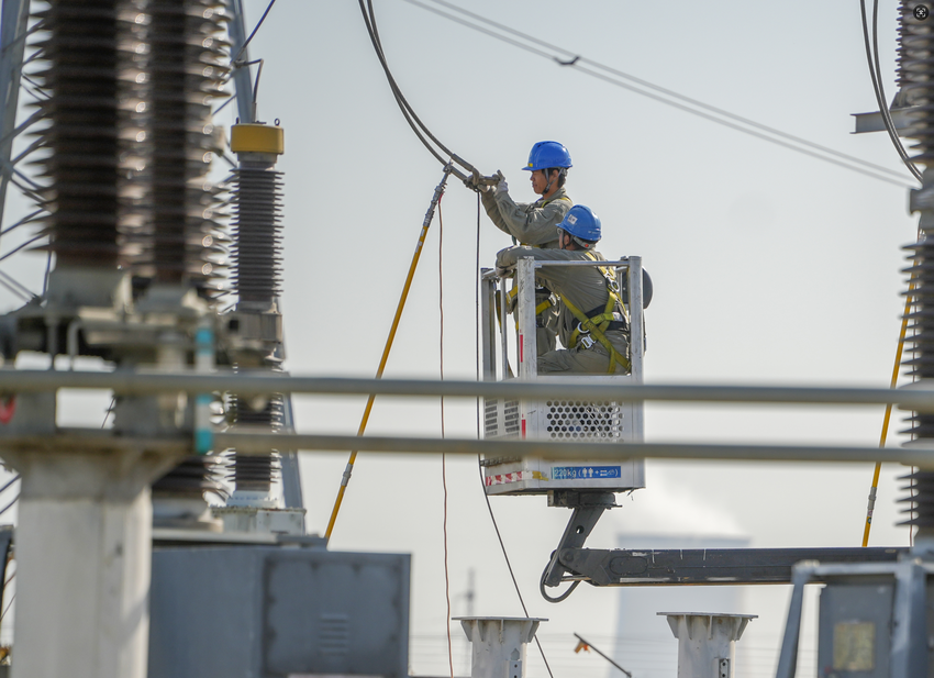 “注意升空作业路线,与2号带电母线保持安全距离!”上午9时,在1号母线侧隔离刀闸更换点,工作负责人胡运杰对照刀闸高处拆除标准化作业指导卡,向登高作业人员逐项提示高空作业风险。