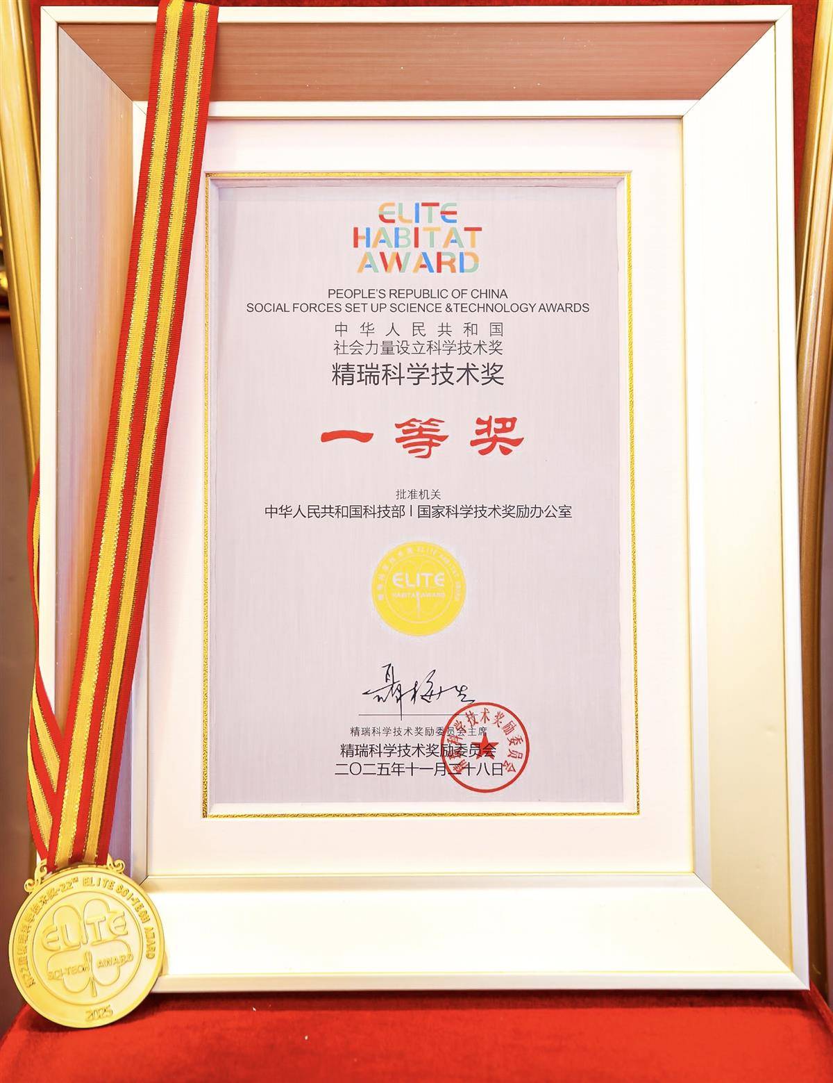 精瑞科学技术奖一等奖获奖证书。受访者提供