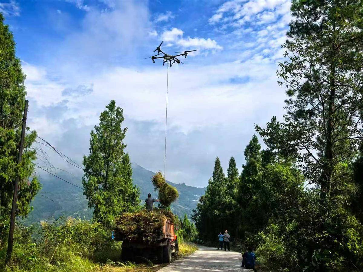 无人机吊运铁扫帚苗装车 (受访方供图)