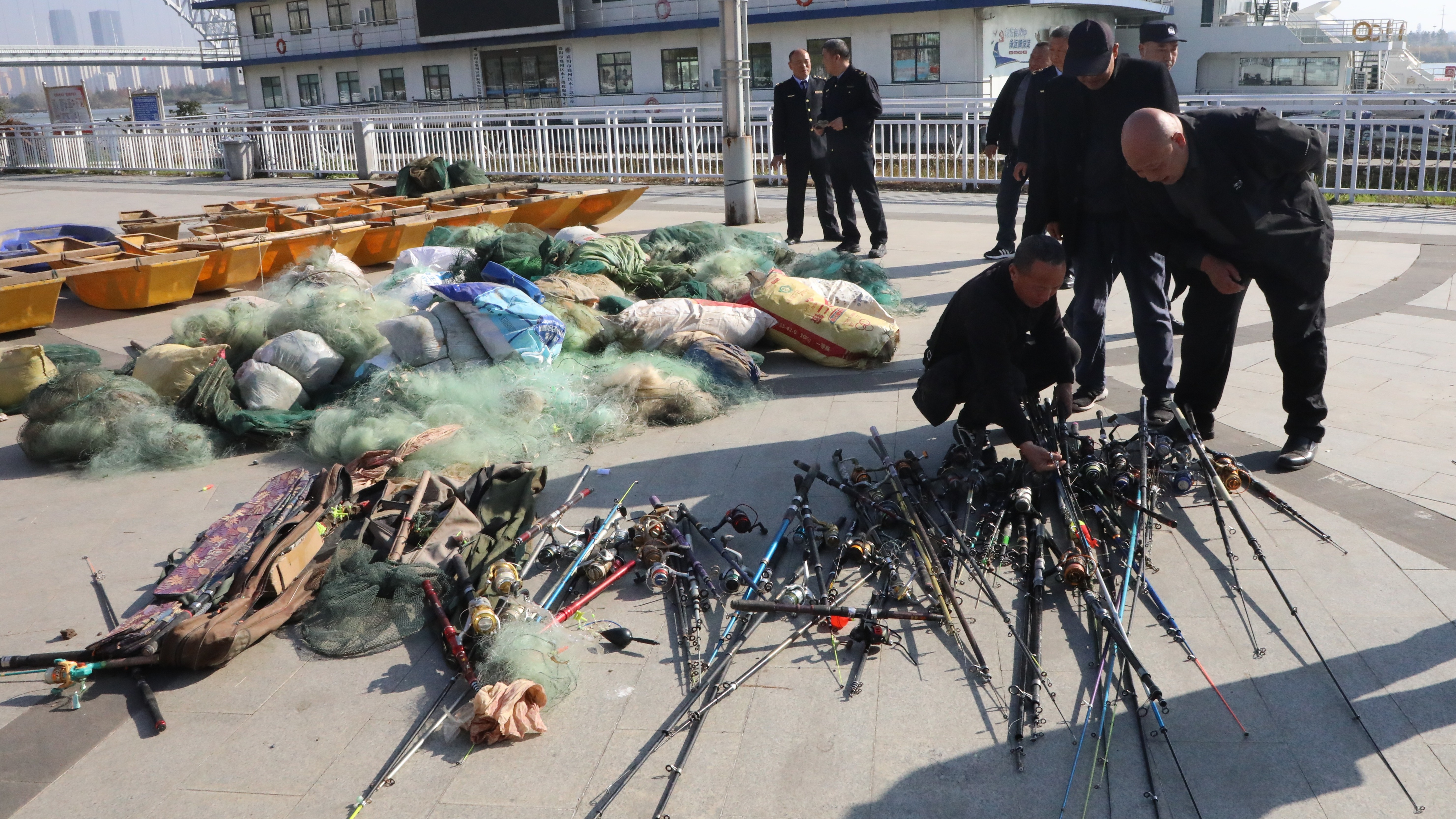 据了解,此次销毁的禁用渔具和非法涉渔“三无”船舶数量众多。其中电鱼设备2套、禁用渔具124套、禁用钓具65副(根)、涉渔“三无”船舶22艘。