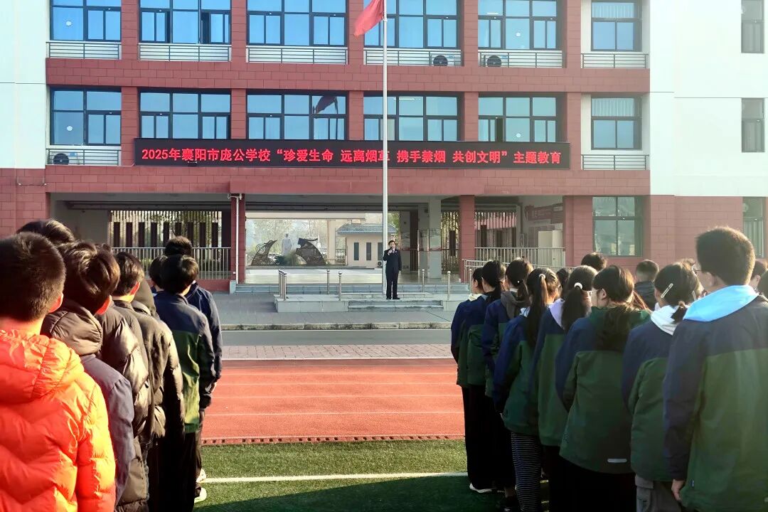 湖北日报客户端讯(通讯员申晓婷)晨光熹微,映照着朝气蓬勃的脸庞,在庄严的国歌声中,五星红旗冉冉升起。11月24日,襄城区检察院联合襄城区市场监督管理局、襄城区烟草专卖局走进襄阳市庞公学校,与师生共同举行升旗仪式,并在国旗下为全体师生带来了一堂以“珍爱生命、远离烟草、携手禁烟、共创文明”为主题的法治课。