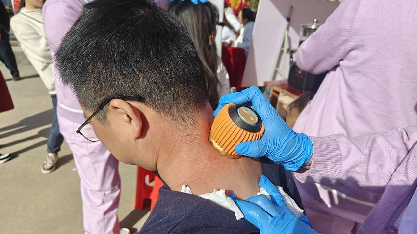 在中医适宜技术体验区,艾灸、耳穴压豆、刮痧等项目前排起长队。医护人员针对颈肩腰腿痛等常见问题,现场施治,不少村民体验后立即感到症状缓解。“做完艾灸,膝盖暖了,走路也轻松多了!”李大娘高兴地说。