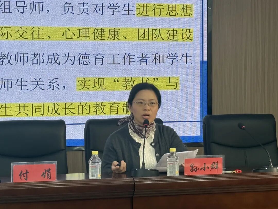 孙主任详细介绍了实施“三导制”的五个步骤:营造良好班纪学风、培养领军人物、实行双向选择、突出活动实效以及综合评价争先创优。这一模式为学生构建了师生、生生互动的立交桥,实现了“让老师、导生在‘导师’的角色中体验成功,让学生在‘导师’的关爱中体验成长”的目标。