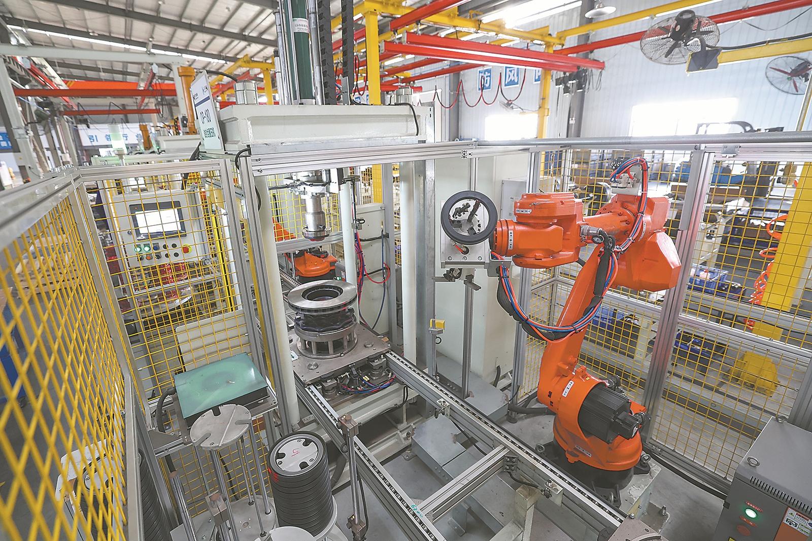 11月25日,位于谷城经济开发区的湖北永力泰车轴制造有限公司生产车间轮端总成安装线上,机械臂正进行自动化装配。