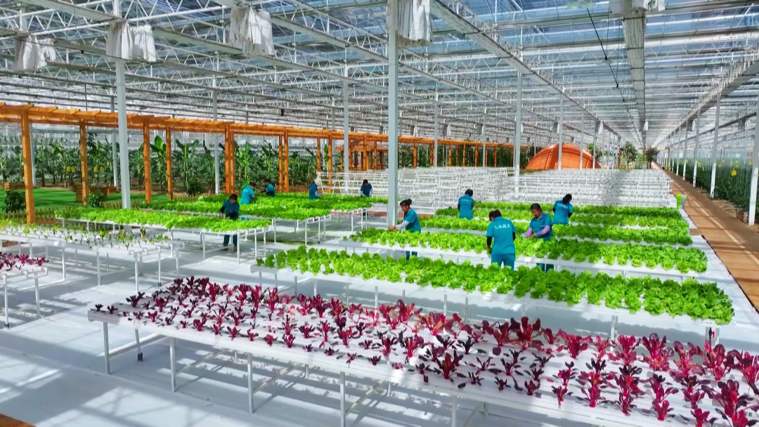 “拿番茄来讲,传统种植模式亩产约4000至5000斤,而我们通过智能系统调控环境,亩产可达1.2万斤。”王端营介绍,这里种植的90多种高端果蔬,能够精准错峰上市,亩均经济效益达到传统种植模式的1至2倍。
