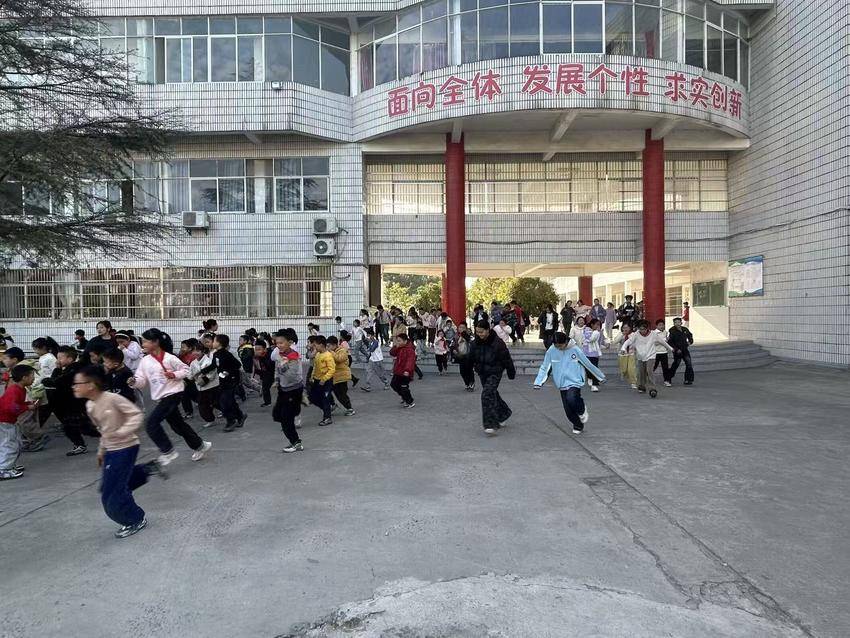 随着“呜,呜,呜”警报声响起,消防安全疏散演练正式开启。全校师生反应迅速,在老师的带领下,学生们用手或毛巾捂着口鼻、猫着腰,安全有序地撤离到操场上。