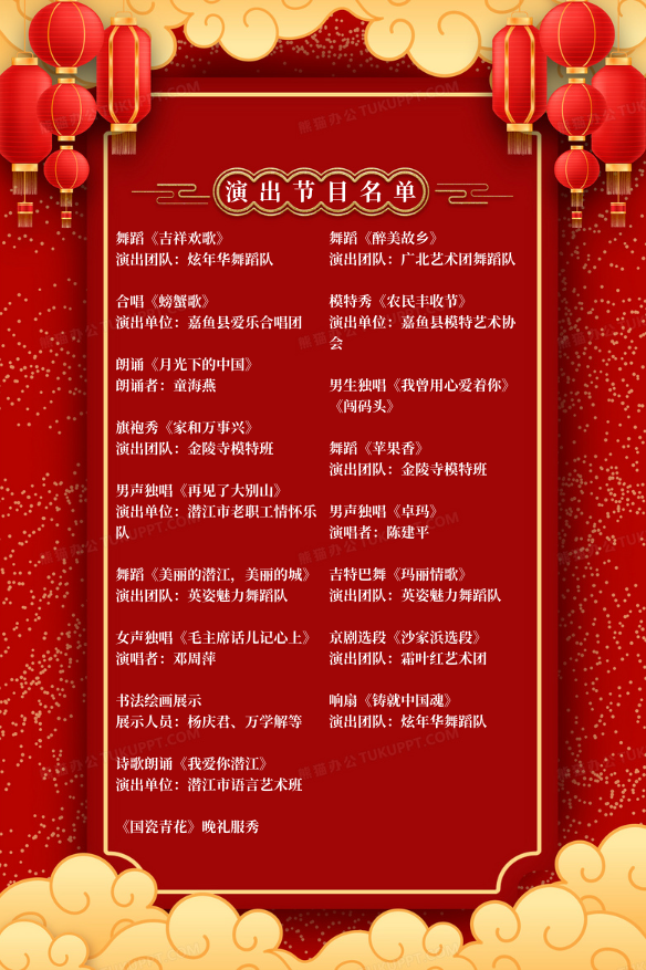 本次文艺汇演汇聚了多个优秀艺术团队,为您呈现丰富多彩的文艺节目: