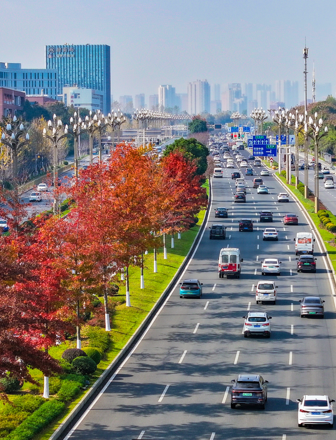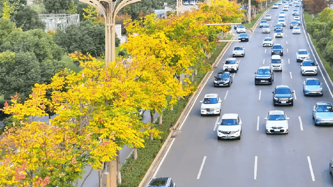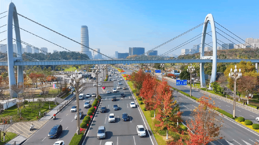 枫叶渐红、梧桐橙黄、乌桕斑斓、银杏金光闪闪......初冬的光谷,交织着绚丽的色彩,宛如打翻了调色盘。来,和小编一起云赏一波初冬限定浪漫!高新大道沿线车行高新大道,