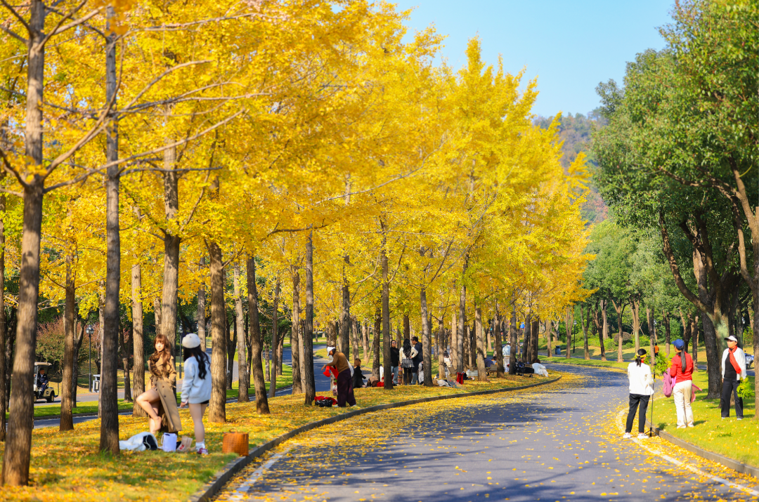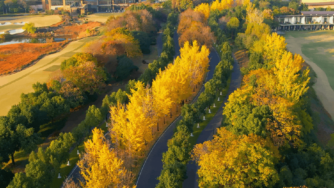 驿山高尔夫谁说银杏只有校园里的书卷气?在驿山高尔夫银杏大道,“黄金甲”洒落一地璀璨~一边是满树金黄,一边是绿意盎然,是光谷才有的独一份体验。