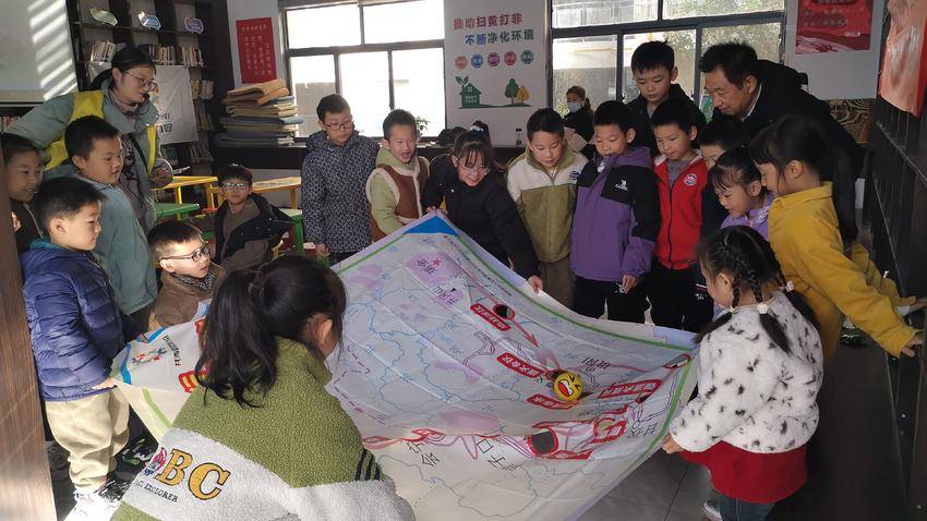课堂之外,团体游戏“重温长征路”将气氛推向高潮。孩子们手拉手跨越“模拟草地”、齐心协力翻越“纸板雪山”,在欢笑与汗水中感悟“团结就是力量”。社工趁热打铁:“长征精神是勇攀高峰的信念,而新质生产力需要敢为人先的勇气,两者都是我们成长路上的‘能量补给站’!”