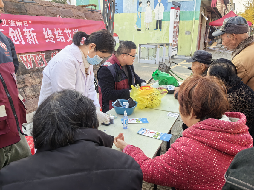 活动于12月1日正式启动,清晨的街道宣传点早已布置就绪,悬挂的主题横幅醒目亮眼,咨询台前摆放宣传册,免费测量血压血糖。道桥镇卫生院公卫科医护人员与志愿者们耐心接待每一位驻足居民,用通俗的语言讲解艾滋病“性传播、血液传播、母婴传播”三大核心途径,重点强调“正确使用安全套”“远离毒品”“避免共用个人用品”等实用预防措施。
