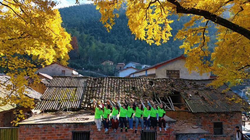 当日恰逢银杏叶最美时节,千年古银杏树枝繁叶茂,金黄的叶片在阳光下熠熠生辉,成为天然的打卡背景。全体参与员工在古银杏树下合影留念,定格下欢声笑语的瞬间。合影结束后,徒步队伍向着罗家山风电场进发,沿途层林尽染,色彩斑斓的秋景如诗如画。上山途中,大家穿行于茂密林间,呼吸着清新空气;登临山脊后,俯瞰群山连绵的壮丽景致,所有疲惫都被美景驱散。