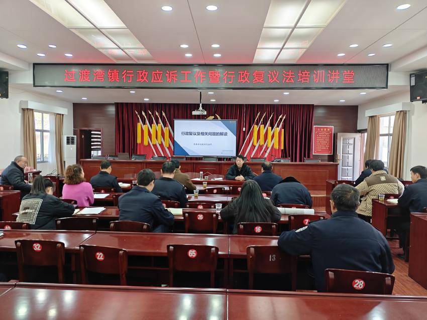 湖北日报客户端讯(通讯员付雪)为切实提升基层依法治理能力与水平,强化基层法治队伍运用法治思维和法治方式化解矛盾、应对诉讼、推动发展的专业素养,助力法治乡村建设,近日,过渡湾镇举办行政应诉工作暨行政复议法专题培训,全镇行政执法部门、信访办、平安办及各村(社区)治调主任参加培训。