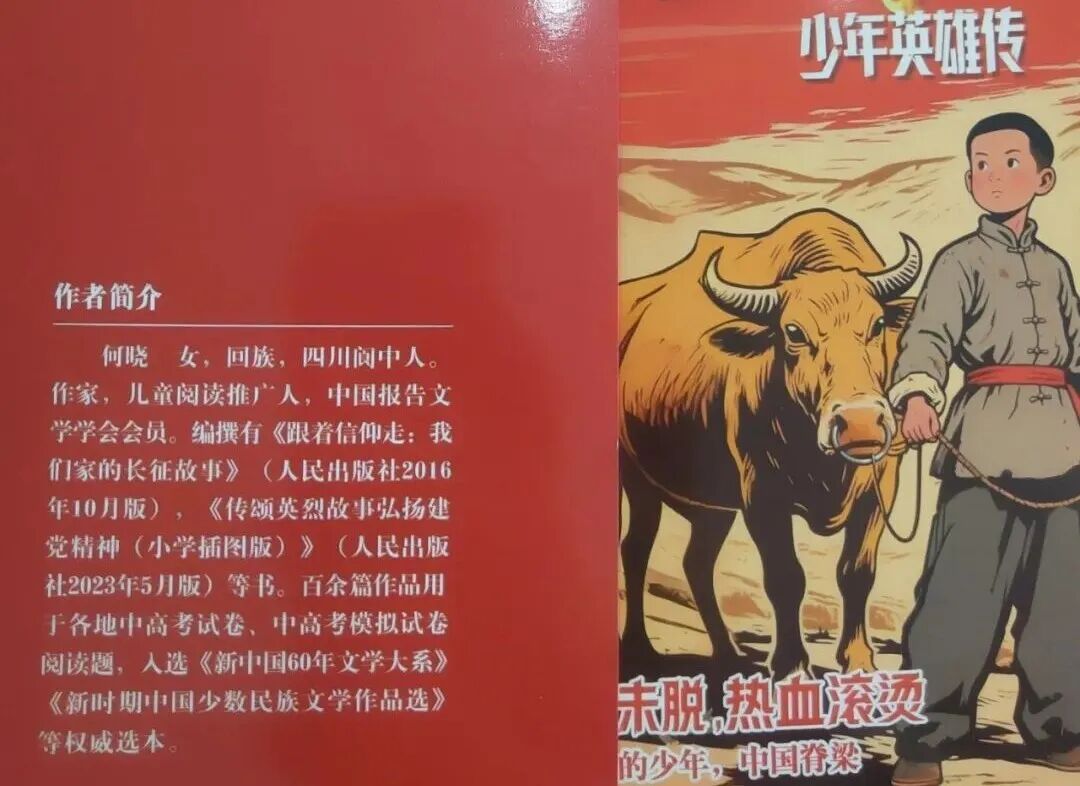 该系列读本作者简介:何晓,女,回族,四川阆中人。作家,儿童阅读推广人,中国报告文学学会会员。编撰有《跟着信仰走:我们家的长征故事》(人民出版社2016年10月版),《传颂英烈故事弘扬建党精神(小学插图版)》(人民出版社2023年5月版)等书。百余篇作品用于各地中高考试卷、中高考模拟试卷阅读题,入选《新中国60年文学大系》《新时期中国少数民族文学作品选》等权威选本。《烽火淬英华》系列读本选题策划、文化发展出版社段洁在“策划手记”里谈到,要“让少年读懂烽火里的平凡星光”——“希望跳出传统抗战题材出版的固有框架,为少年读者打造一部既有历史深度,又和读者没有距离感的“轻历史”读物,努力将宏大的历史背景转化为少年可感知的故事场景,提升阅读体验。”