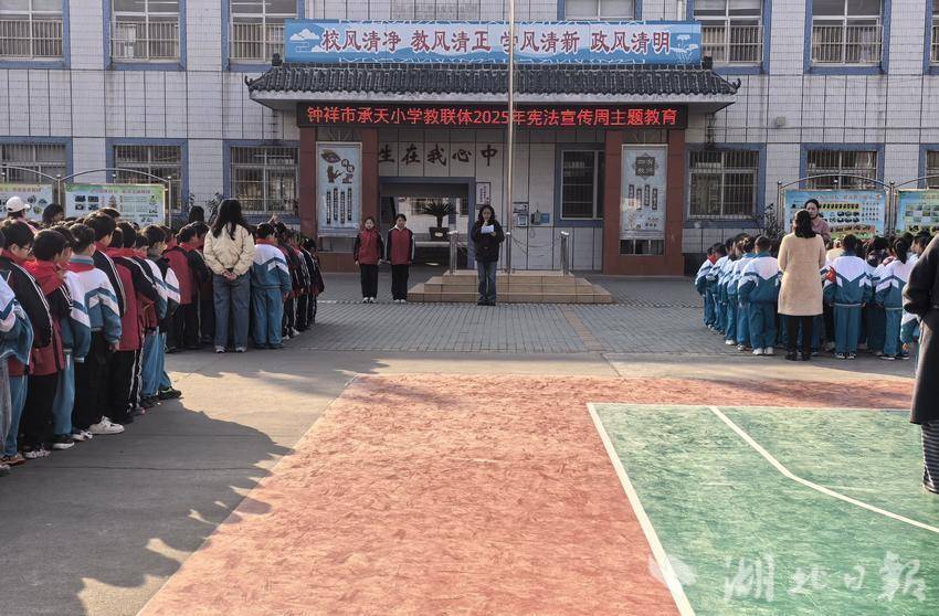 湖北日报客户端讯(通讯员张振智、程莎莎、杜广)12月1日,钟祥市承天小学教联体以全国“宪法宣传周”为契机,举行主题教育启动仪式,全面增强师生法治观念,营造浓厚的校园法治教育氛围。