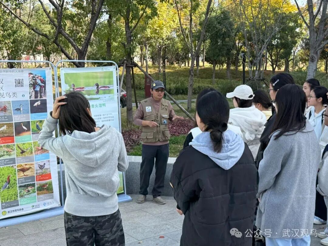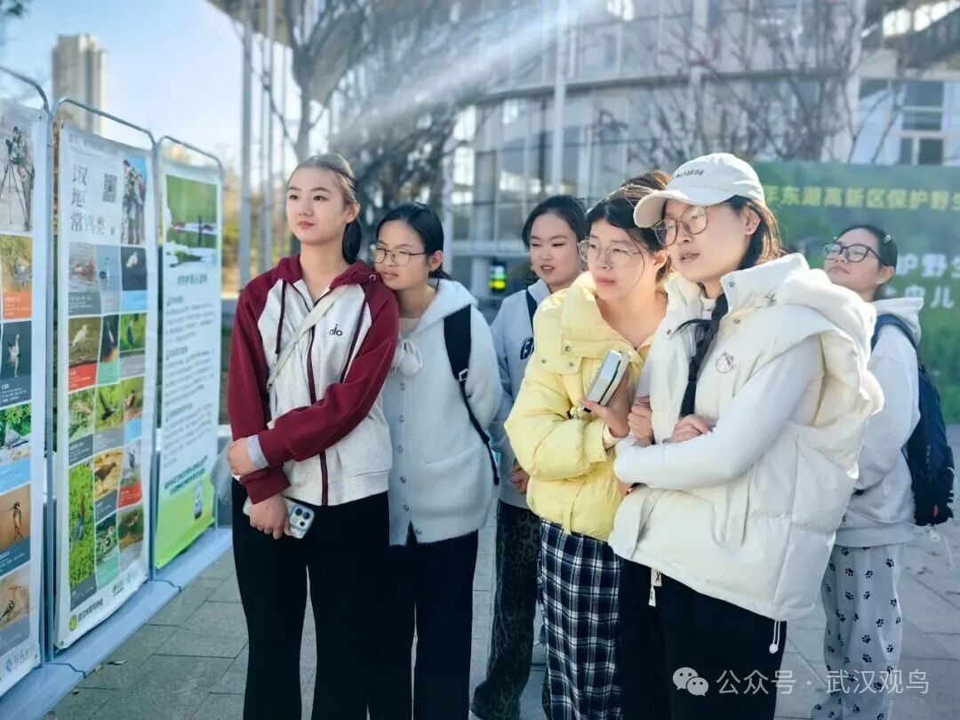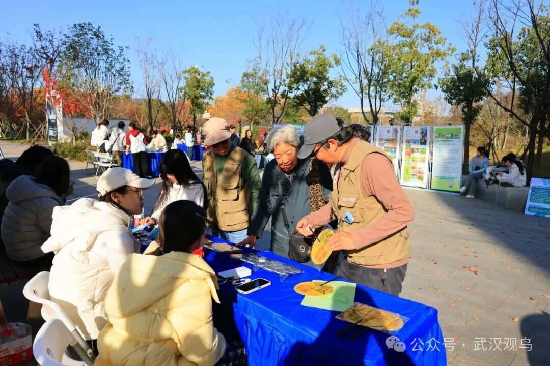 活动现场设置的青头潜鸭主题展板、武汉地区鸟类科普知识专栏以及实用的“防鸟撞”专题展览,构成了一个小型而生动的户外生态课堂。市民朋友们通过观看图文并茂的展示内容,深入了解了被誉为“湿地精灵”的青头潜鸭的生存现状、栖息地保护的重要性以及武汉丰富的鸟类资源,增强了对于本土生物多样性保护的认知。