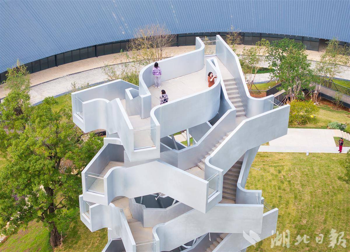 在沉湖岸边,一座乳白色的玲珑塔观鸟台刚刚落成,采用“双螺旋”DNA结构设计。该塔高16.9米,共7层,每层设有360度瞭望口,朝向不同方向,均安装了固定式的望远镜,提供多角度观鸟机位,尤其适合摄影爱好者。这座造型独特的建筑于2025年11月正式建成,一经开放就受到追捧,成为火爆社交媒体的“网红”。