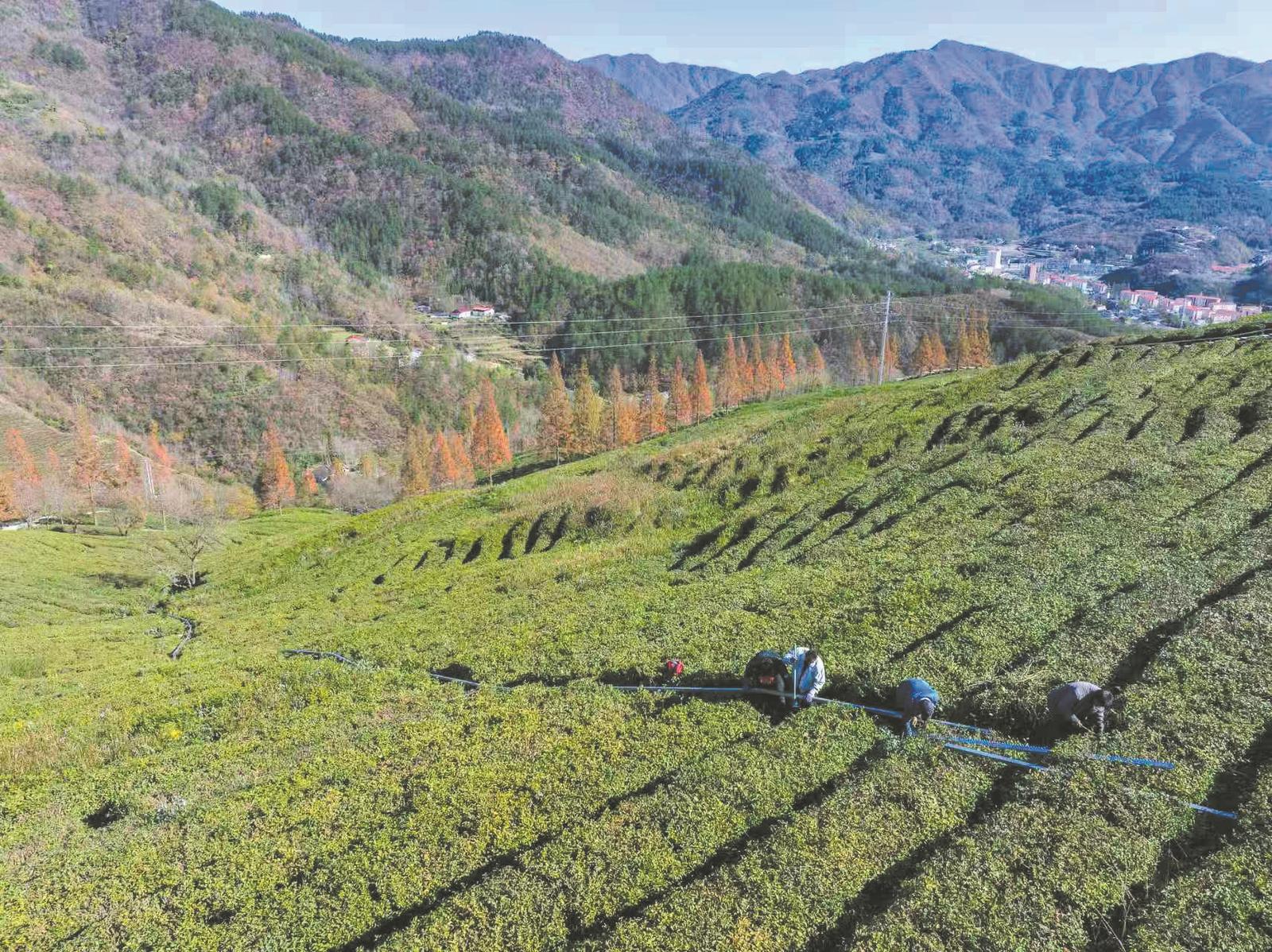 近日,工人在保康县黄堡镇白虎岭茶园施工。