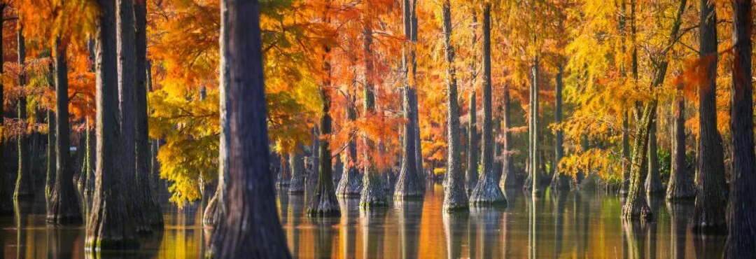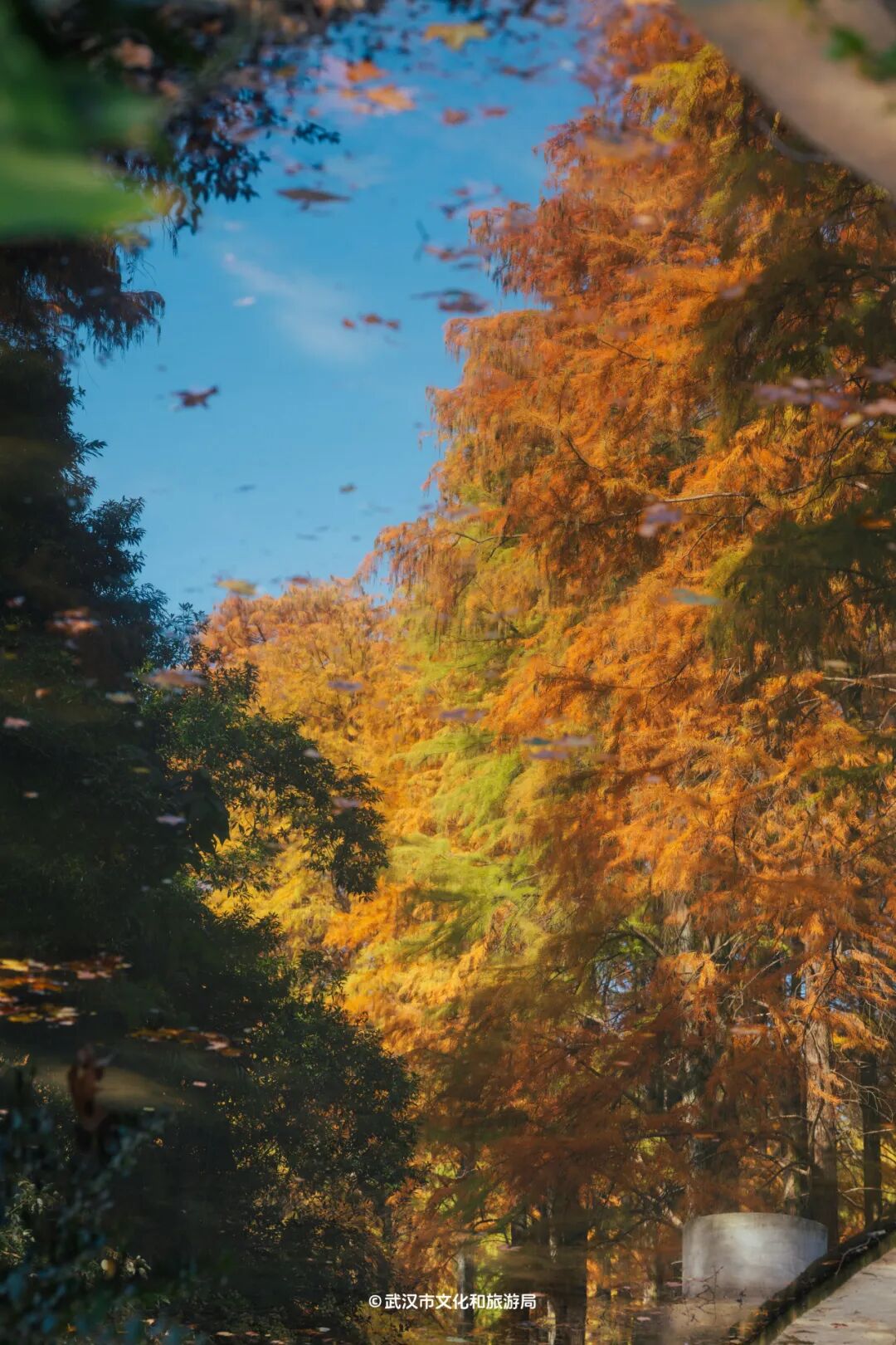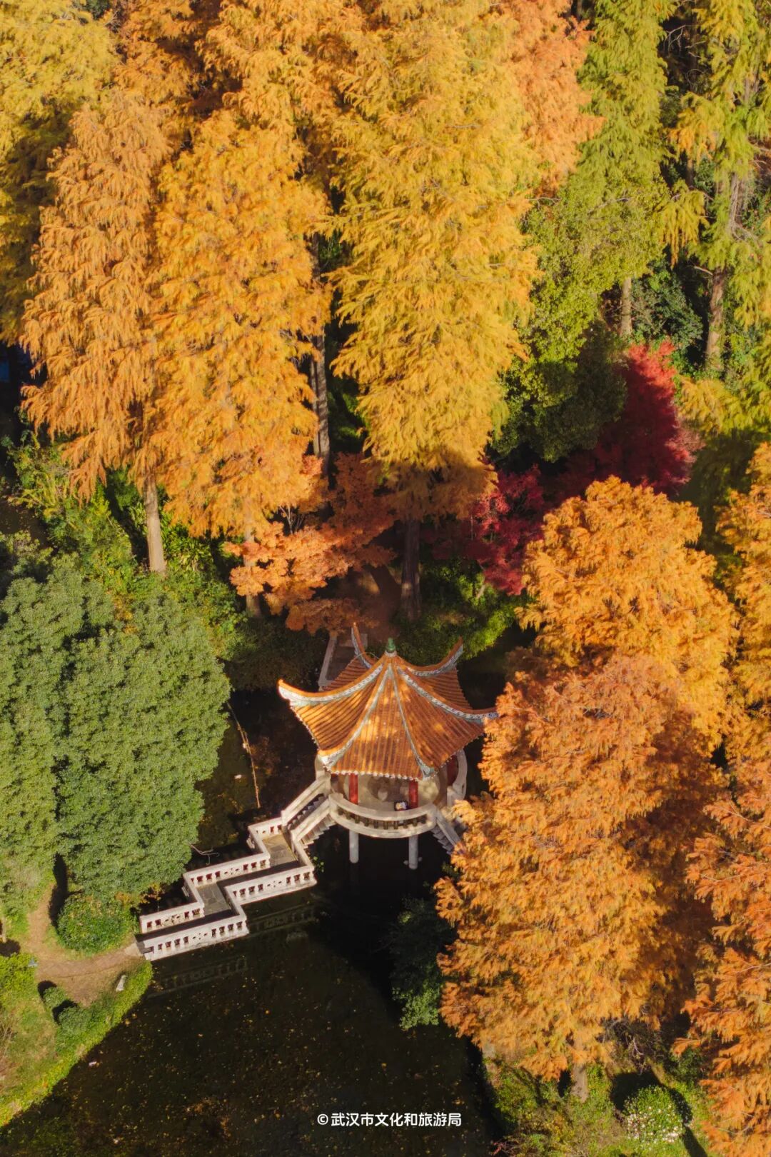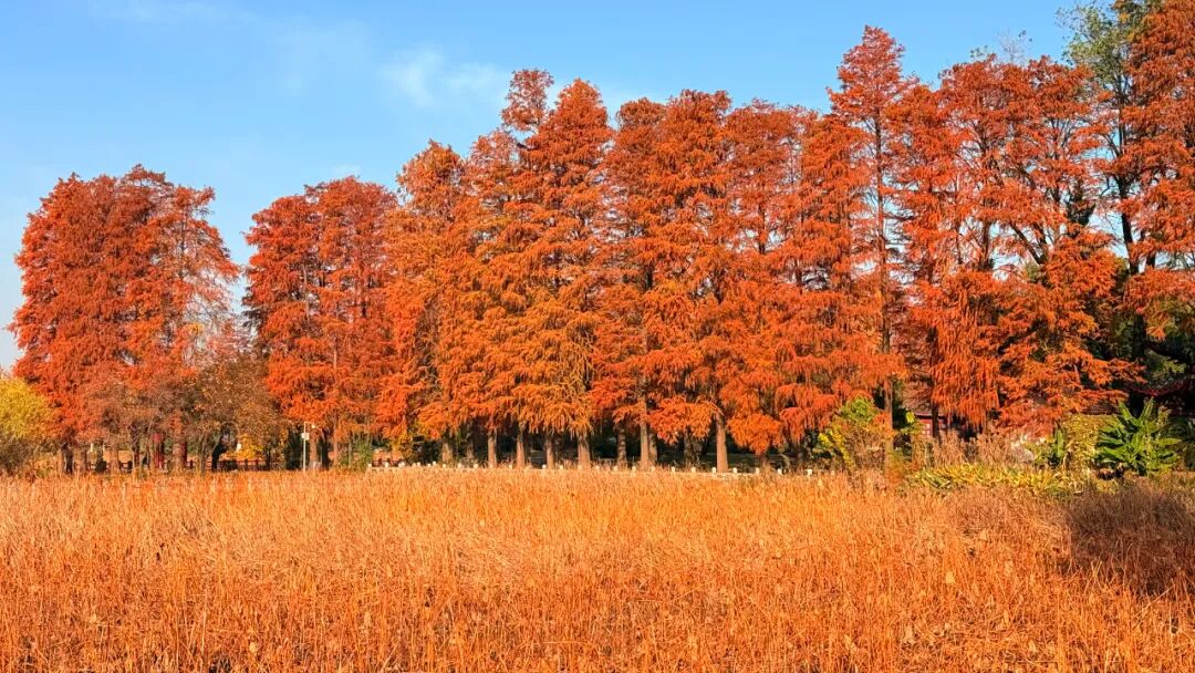 武汉最大水上森林,24000株杉树,红了!
