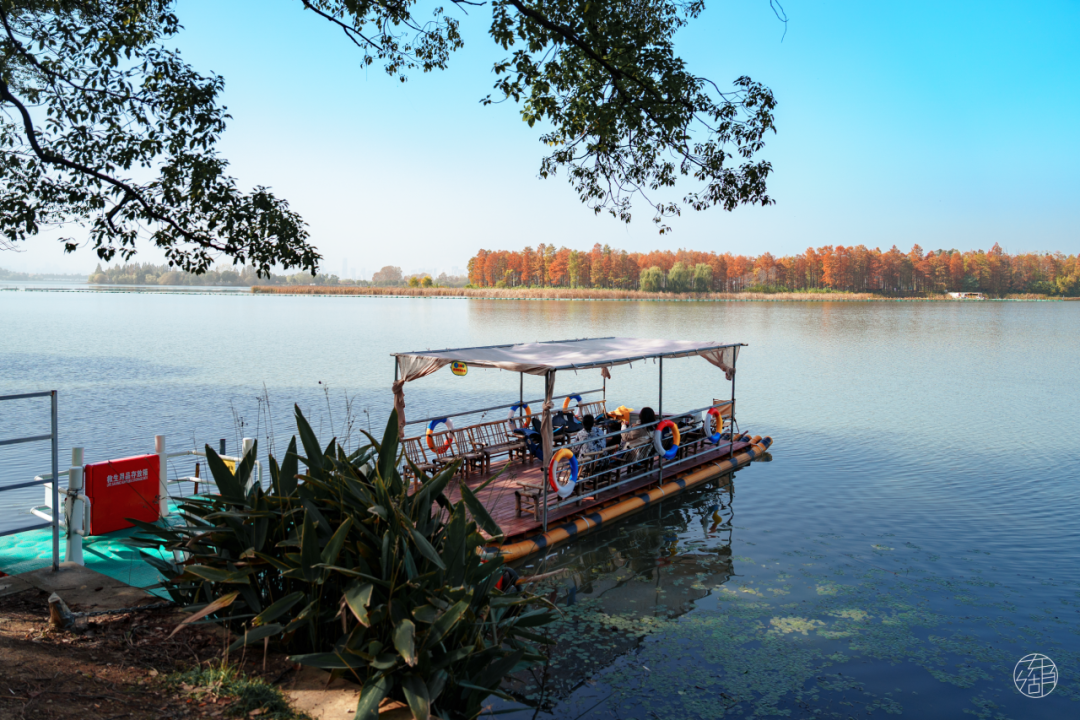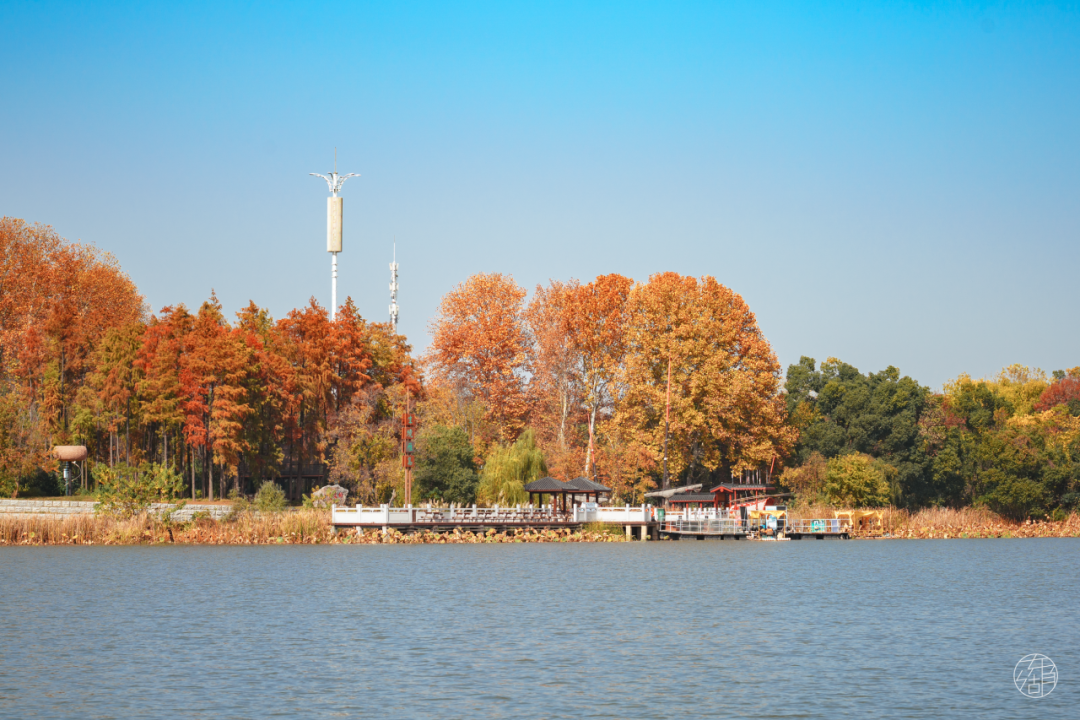 「坪沙落雁」旁,银杏林正金黄耀眼;「九曲桥」附近,水杉与池杉已染成赭红;火遍全网的500岁三角枫,也悄悄换上了彩衣。