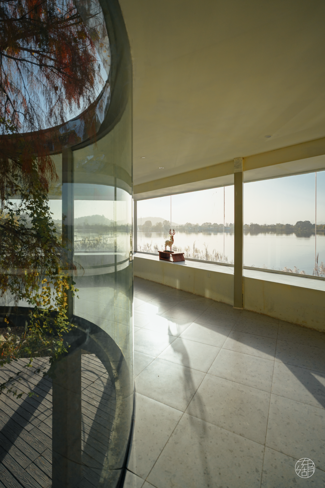 大雁生态园旁的「网红观景屋」不容错过:推门而入,一整棵大树被玻璃环绕,光影在地面流淌成画;走到窗边,东湖的浩渺烟波一览无余,运气好时还能远眺楚天台。