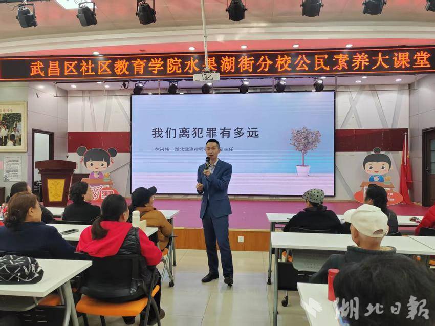 湖北日报客户端讯(通讯员陈静蕾、赵莎)近日,武昌区社区教育学院水果湖街分校在“学习强国”东亭学习小站开展公民素养大课堂活动,80余名分校学员与社区居民踊跃参与。活动特邀湖北武珞律师事务所合伙人、副主任徐兴炜律师主讲,带来了一场干货满满的法律知识分享。