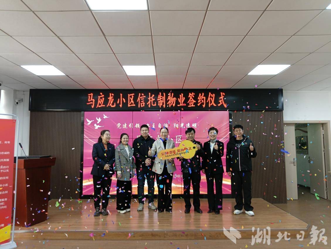 近日,华锦社区举行马应龙小区“信托制”物业服务签约仪式。该社区成为南湖街道首个引入“信托制”物业的社区。