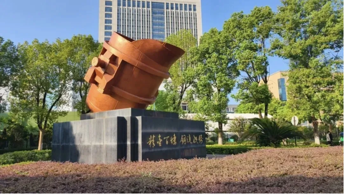 当黄家湖的风掠过知行路的路口,总会在一尊橘红色的钢铁巨物旁留下回响。那是武汉科技大学的铁水包雕塑,它曾盛载过1400度的炽热铁流,如今以12.8吨的厚重身躯,在校园里写下关于钢铁的情书。