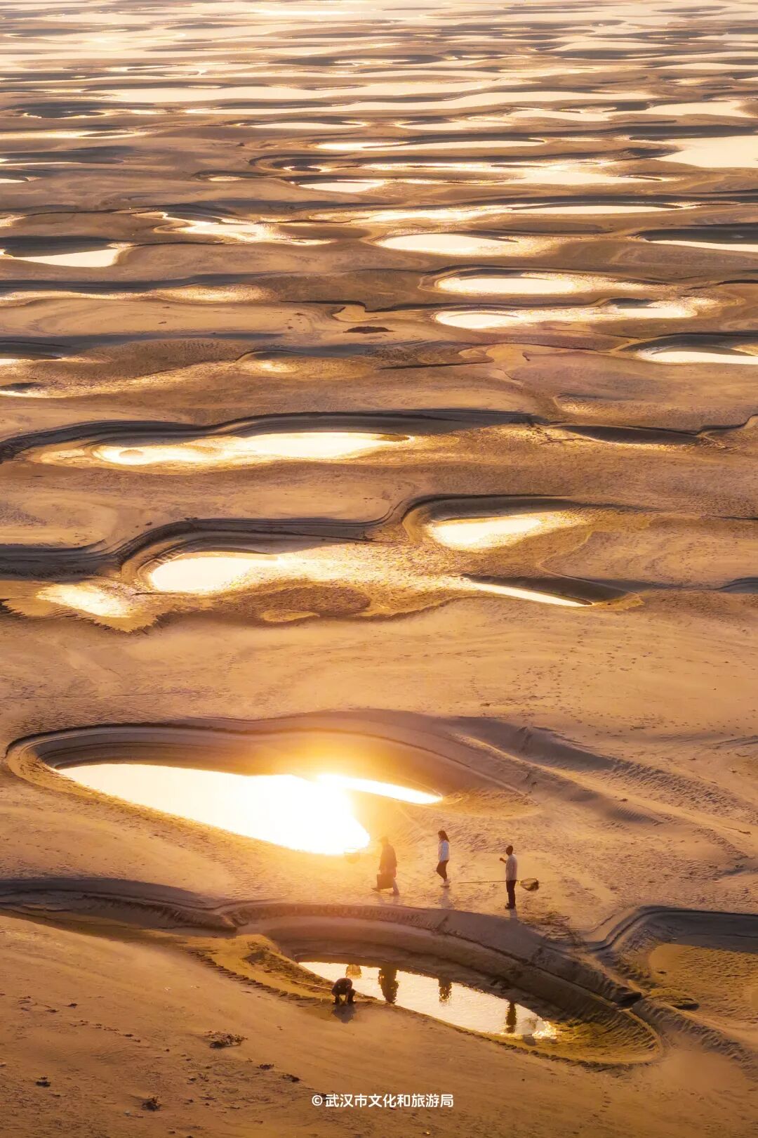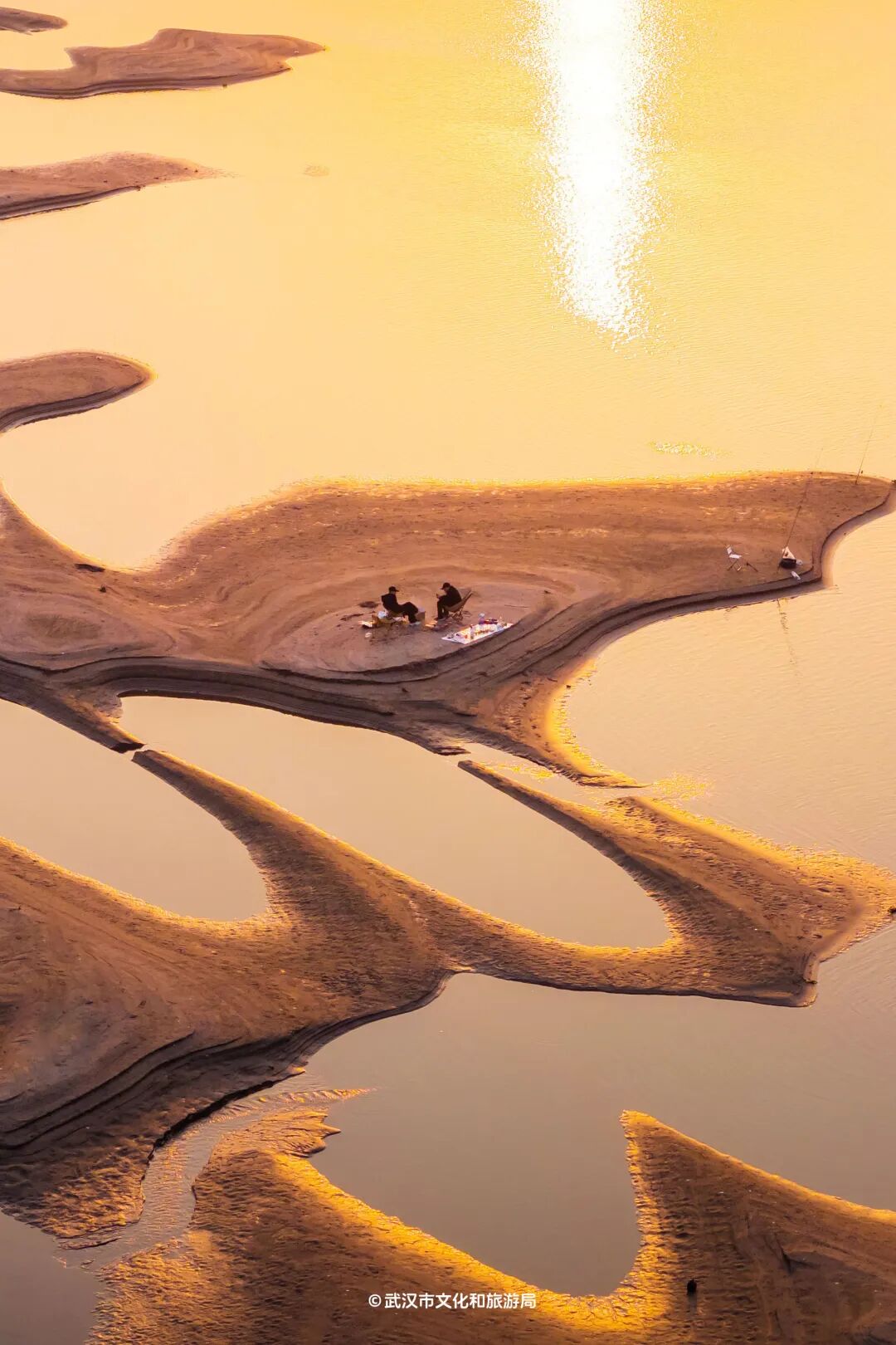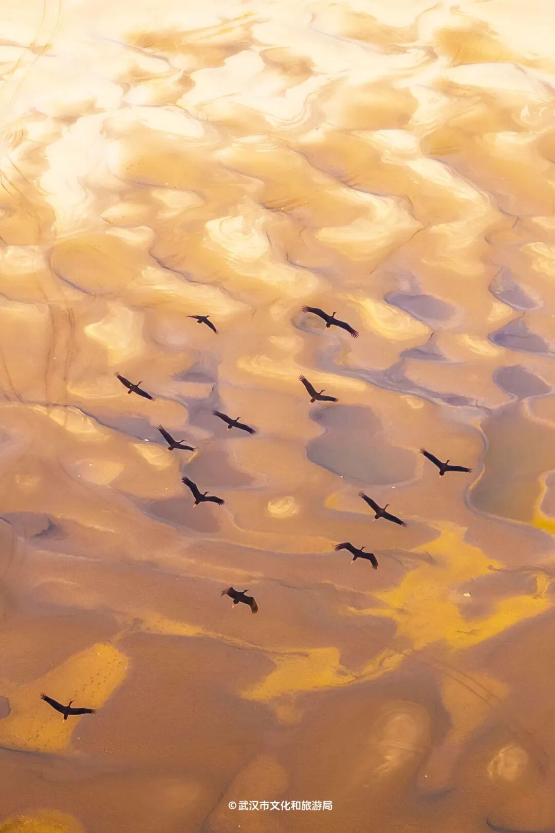 同样冬季限定的还有天兴洲的“沙漠”。12月初,武汉的长江水位降到15米左右,天兴洲洲头和北岸的沙滩大面积露出,天兴洲和长江新区几乎要连起来。