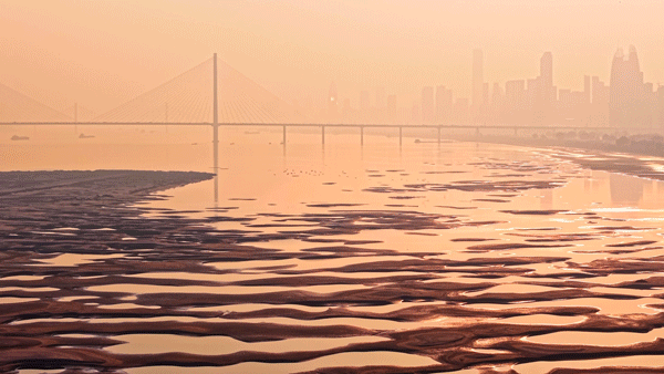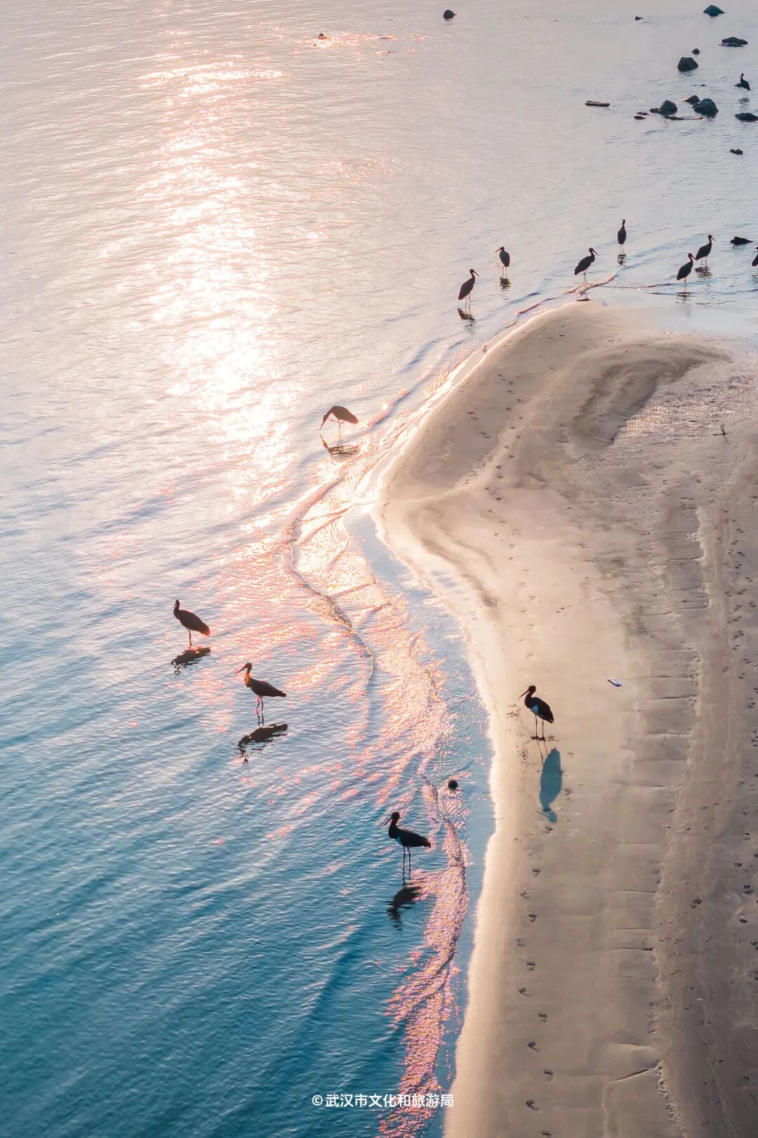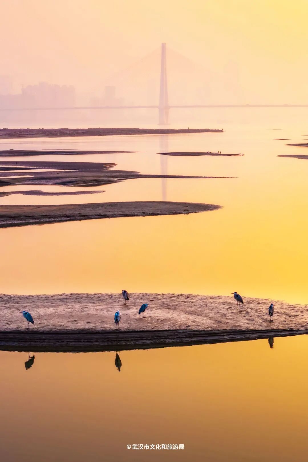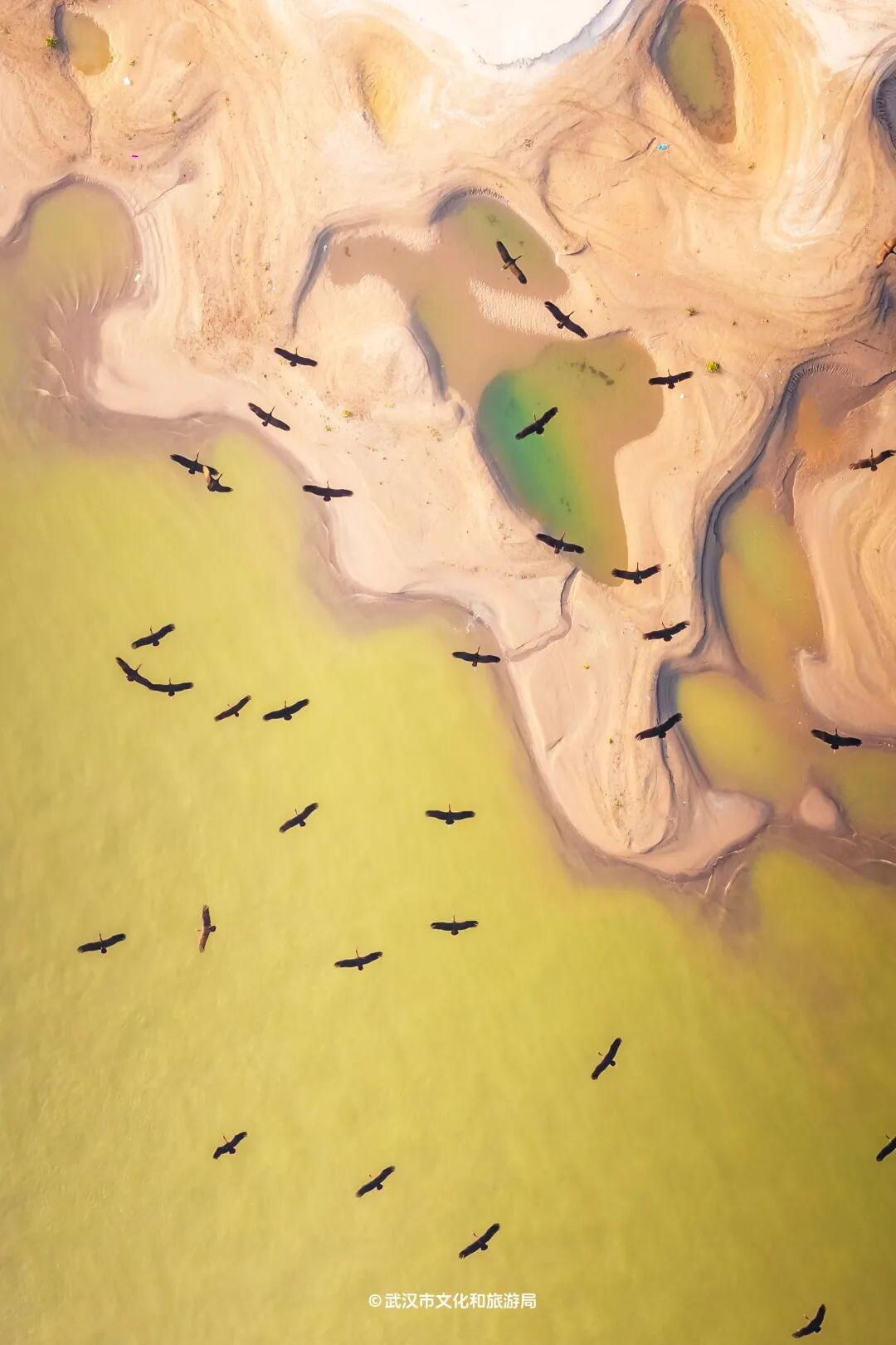 同样冬季限定的还有天兴洲的“沙漠”。12月初,武汉的长江水位降到15米左右,天兴洲洲头和北岸的沙滩大面积露出,天兴洲和长江新区几乎要连起来。