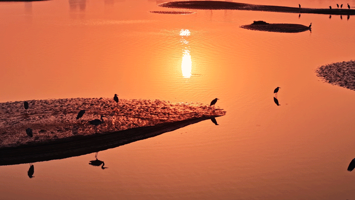 沙滩看似荒凉,但其实鱼虾众多,吸引来许多候鸟。“鸟中大熊猫”、国家一级保护野生动物黑鹳尤其喜欢这里,2014年以来每年都会有黑鹳在此过冬,而且数量越来越多。