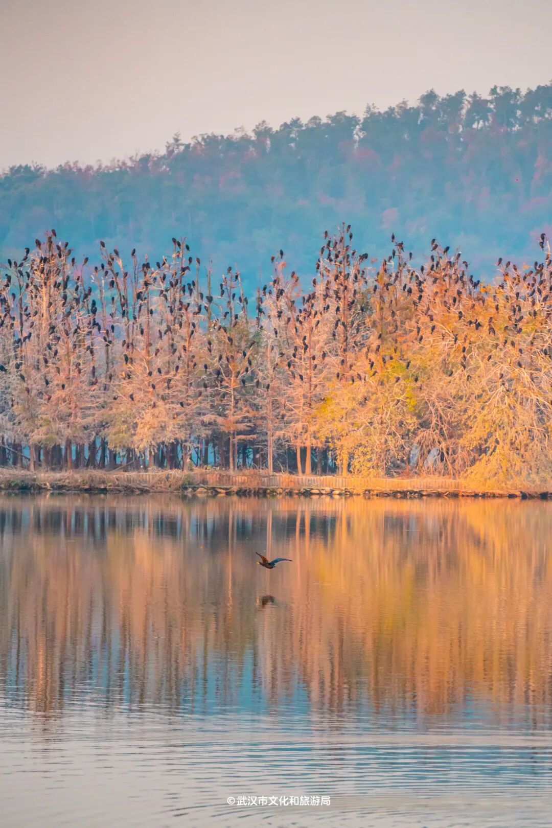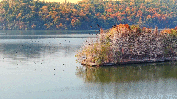 其实十几年前,东湖的普通鸬鹚并不多。2011年景区对濒临消失的鸟岛实施保护工程,并定期维护鸟岛的环境,每年在岛上过冬的鸟群才越来越庞大。
