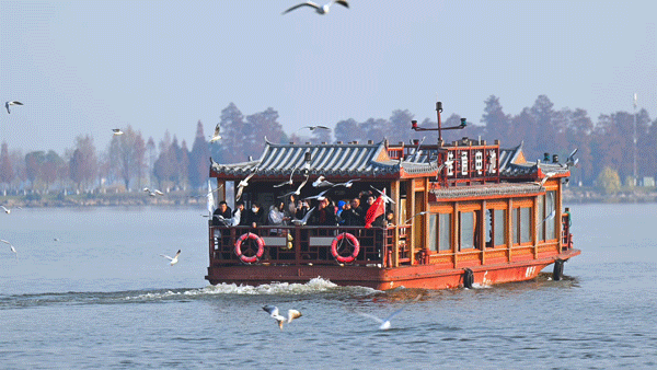 今年东湖游船变身“观鸟专线”,游船会沿东湖核心水域缓行,途经多处鸥群聚集区,方便大家近距离欣赏红嘴鸥。