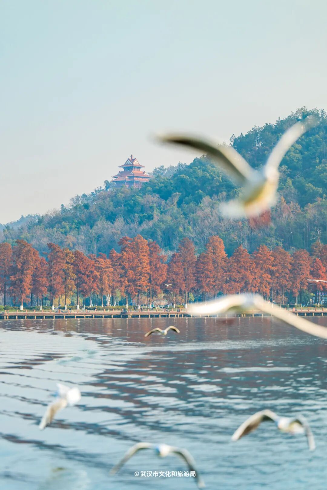 从听涛景区楚风园码头上船,经过湖心岛,横穿东湖,最终停靠在磨山景区磨山码头,全程约30分钟,一路都有红嘴鸥相随,超浪漫。